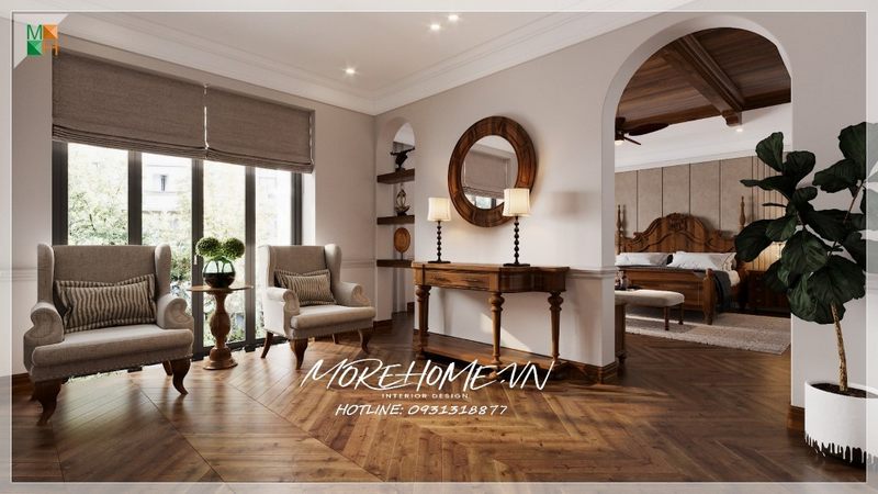 Với phòng ngủ master có diện tích rộng, gia chủ có thể dành riêng một không gian nhỏ ngoài khu vực ngủ làm nơi thư giãn, đọc sách riêng tư